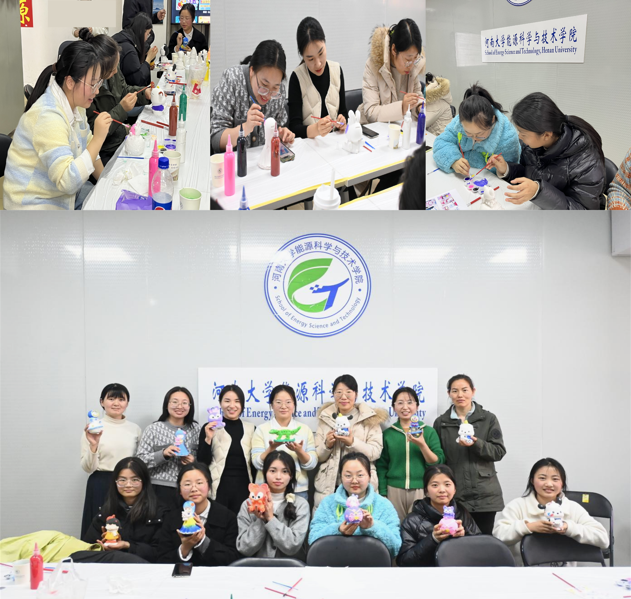 活动现场,色彩缤纷的颜料、各式各样的石膏娃娃和不同种类的画笔摆满了桌面。活动中,大家纷纷拿起画笔,为石膏娃娃抹上色彩,一笔一墨勾画出独一无二的作品。塑白无意,画有乾坤,无情之物被赋予了生命,活灵活现的展现在大家的面前。每一个彩绘的石膏娃娃都凝聚着大家的创意和思考:栩栩如生的大恐龙、呆萌可爱的小狗、惟妙惟肖的公主、在太空的玲娜贝儿、读书中的哆啦A梦、颜色各异的hello kitty ....参加的老师和同学们边画边聊,活动室内充满了欢声笑语。