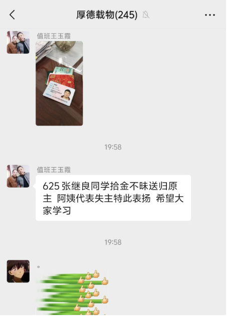2022级化学工程与工艺本科生张继良同学拾金不昧,在和室友一起发现遗失物品时第一时间上报宿管阿姨并物归原主,宿管阿姨实名表扬张继良同学。此时,正值学院开展“学习雷锋精神,争做追‘锋’青年”活动期间,他以实际行动诠释无论时代如何变迁,雷锋精神永不过时。雷锋精神,人人可学,奉献爱心,处处可为。