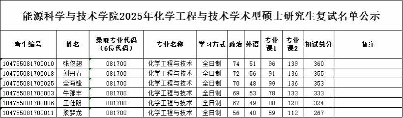 招生具体情况,划定2025年化学工程与技术学术型硕士研究生以及材料与化工专业型硕士研究生的复试分数线,具体如下表所示。