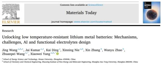 联合上海交通大学在国际知名期刊《Materials Today》(影响因子22)上发表了一篇题为“Unlocking Low Temperature-Resistant Lithium Metal Batteries: Mechanisms, Challenges, AI and Functional Electrolytes Design”的综述文章,为低温环境下锂金属电池(LMBs)的性能优化提供了全新的思路与解决方案,有望推动锂金属电池在极端条件下的广泛应用。91麻豆