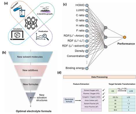 2. 结合AI与高通量实验优化多组分电解质;