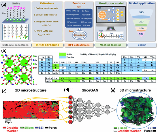 研究团队利用AI模型分析超万篇文献数据,预测溶剂-盐-添加剂组合的性能。展示了通过机器学习筛选的氟化有机分子,可构建无机-有机杂化SEI层,显著提升界面稳定性。