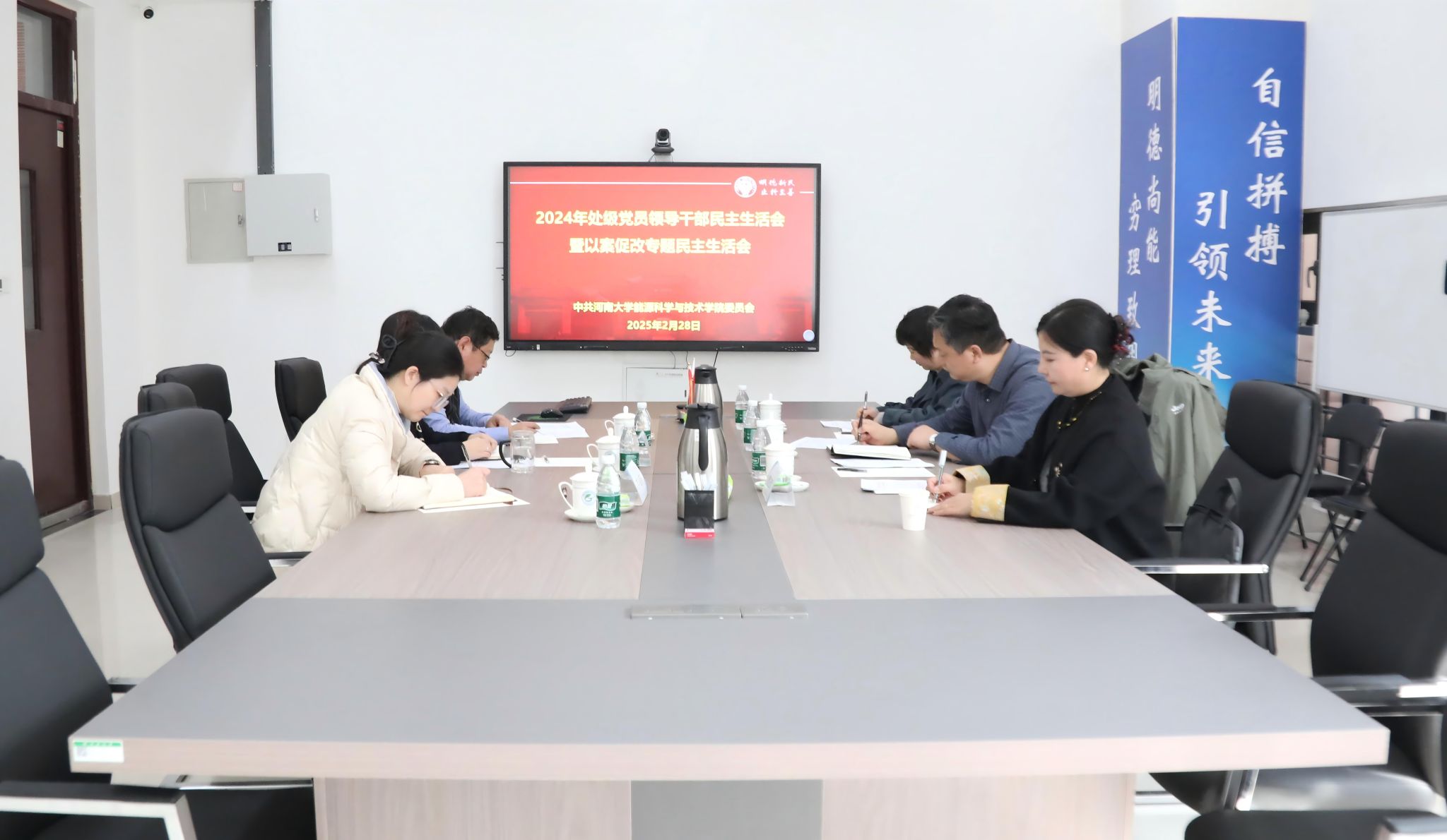 在郑州校区九章学堂北楼A203会议室召开2024年度处级党员领导干部民主生活会暨以案促改专题民主生活会。校第五督导组组长、正处级纪检监察员李贵仓,副组长、农学院党委副书记曹玉辉,督导组成员、药学院党委办公室主任李佳桓到会指导。学院全体领导班子成员参加会议。会议由院党委书记程亚敏主持。