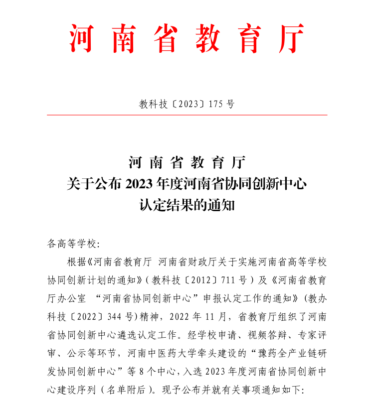 河南省协同创新中心是河南省为促进高等教育与经济社会的有机结合,密切高等学校与政府、行业企业、科研院所的多方合作,切实增强高校创新和服务能力而设立的,是我省创新体系的重要组成部分,中心在推动学科建设、人才培养、科学研究“三位一体”发展,主动对接新兴产业链和未来产业布局,具有解决经济社会发展重大问题的协同创新能力,能够为我省建设国家创新高地、实现“两个确保”贡献力量。