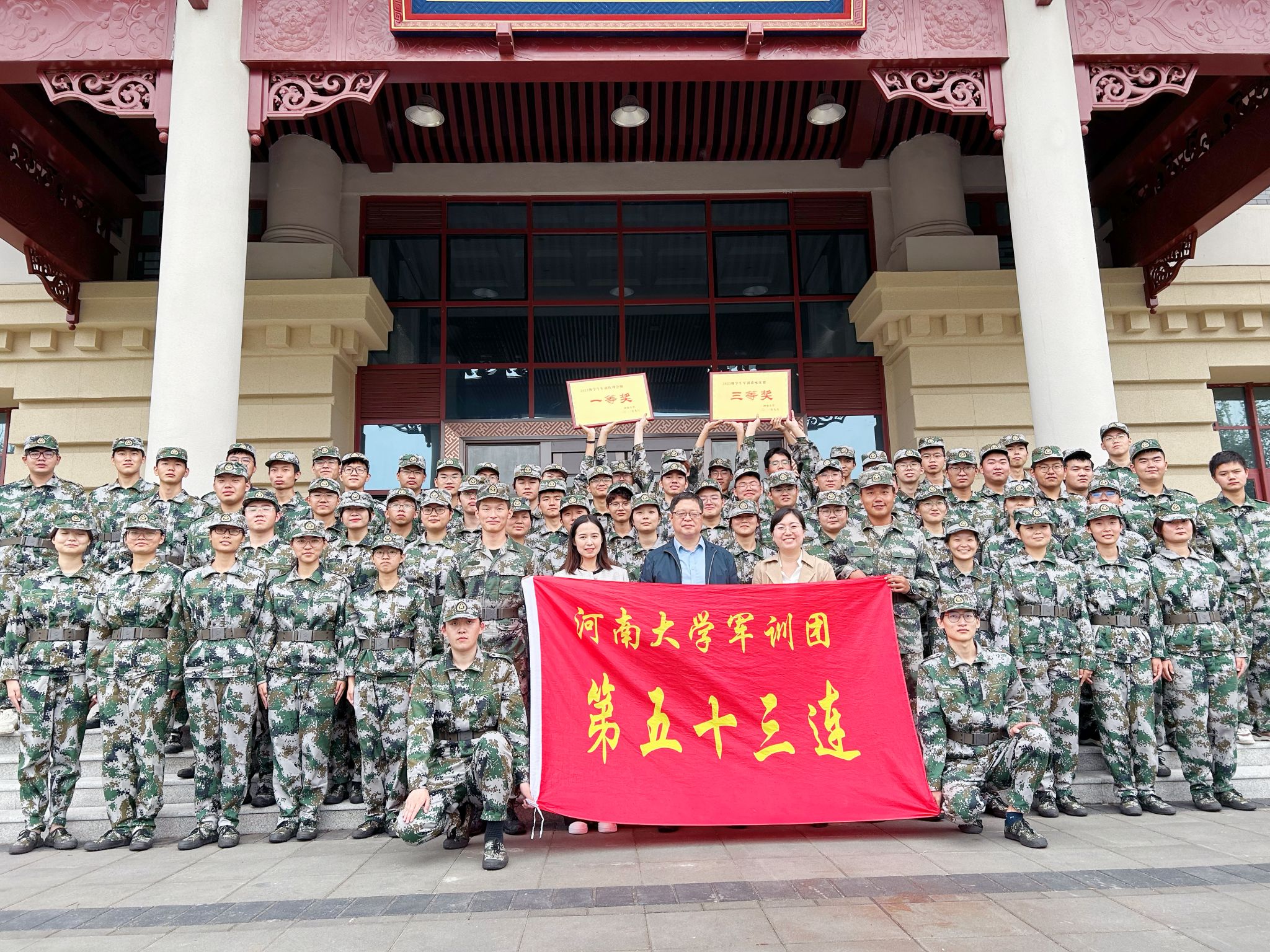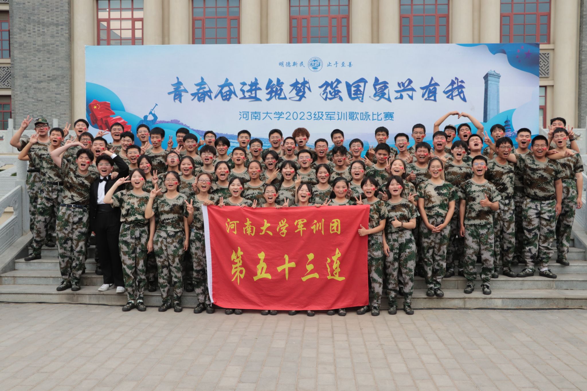 伴随着军训总结表彰大会落下帷幕,2023级本科新生为期21天的军训也告一段落。在这21天里,同学们经历了绵绵细雨,也熬过了烈日当头;唱响了河大校歌,也喊出了当代青年的最强音。训练场上,他们用钢铁般的意志展示出战士的英姿;歌咏比赛中,他们用动情的歌声唱出了对祖国母亲的无限热爱;会操表演时,他们又以勇争第一的精神,为自己交出了最满意的答卷。经过此次军训,53连的全体成员强健了体魄,昂扬了精神,磨练了意志品质。从开学之初的陌生到如今的熟悉,同学们的集体责任感和凝聚力得到大大提升。