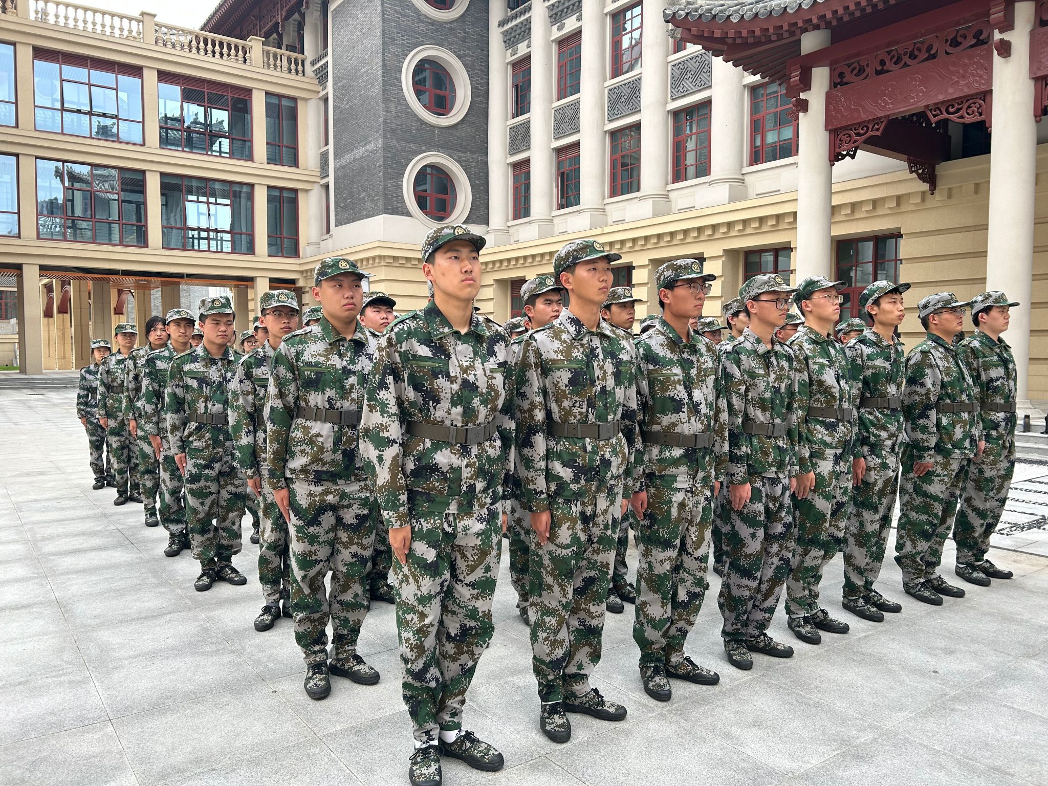 53连全体成员在石铭辉教官的带领下,迈着整齐的步伐,以昂扬向上的姿态向友兰学堂中楼东侧的主席台前走来。在石教官的指挥下,53连全体成员高质量完成整队与报数、立正与稍息、停止间四面转法、齐步行进、跑步走、正步走等内容。并最终荣获91麻豆