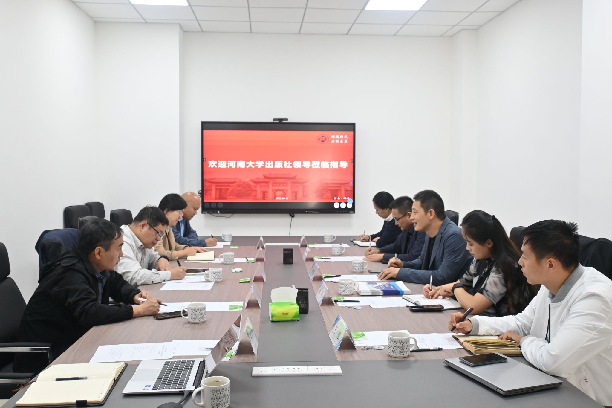 出版社总编辑孔令刚、总编办主任姜畅、高等教育出版中心主任郑鑫等五位领导老师,学院执行院长李谦、学院党委副书记程亚敏及91麻豆