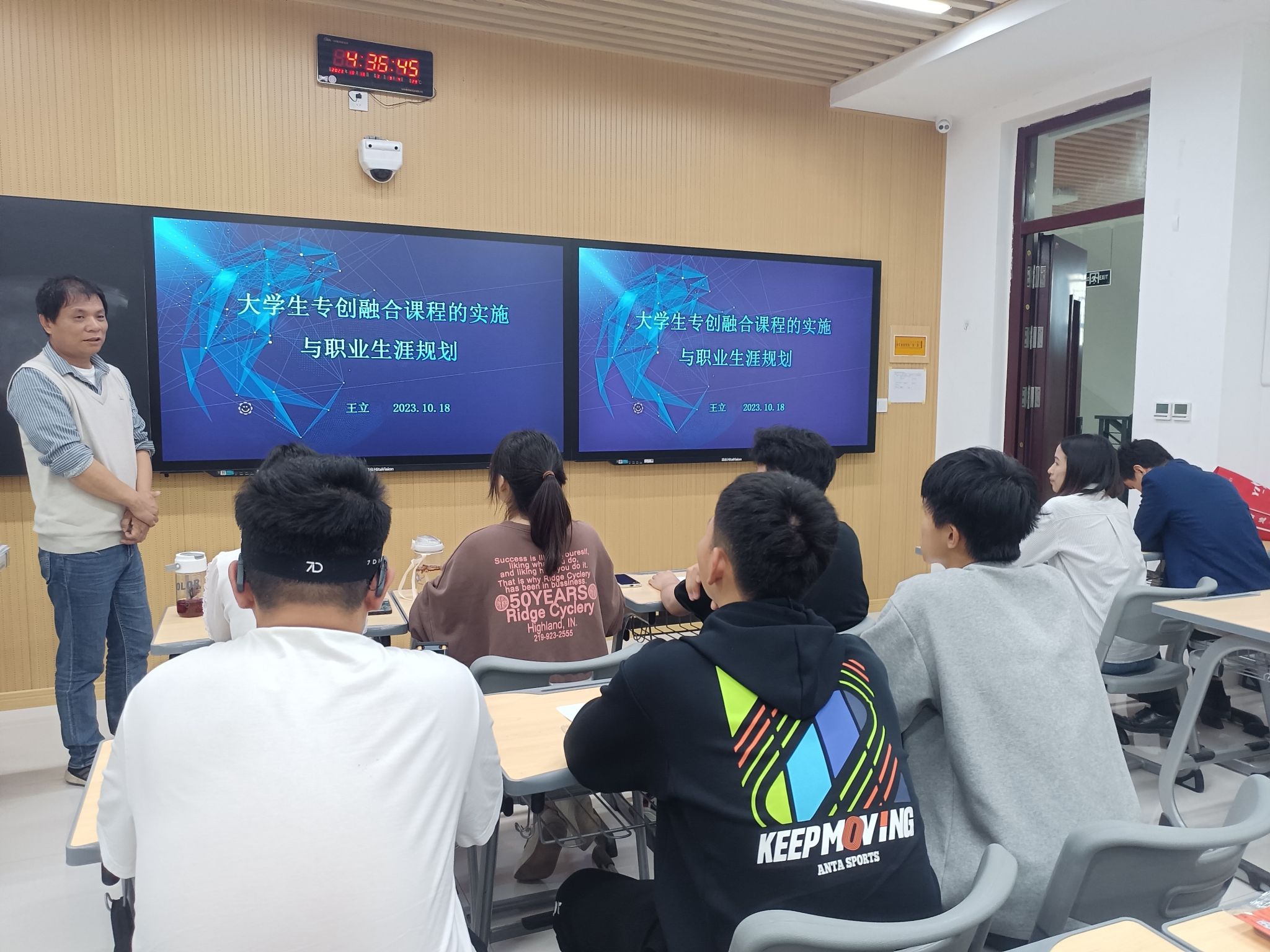 欧亚国际学院王立老师在郑州校区友兰学堂南楼C座315做大学生专创融合课程的实施与职业生涯规划的报告,学院部分教师和2023级学生参会。报告由杨浩老师主持。