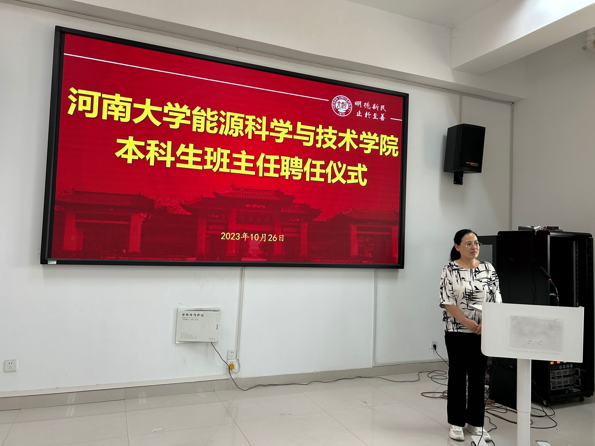 在郑州校区九章学堂南楼C-417会议室举行本科生班主任聘任仪式,学院全体教师参加。仪式由学院党委副书记程亚敏主持。