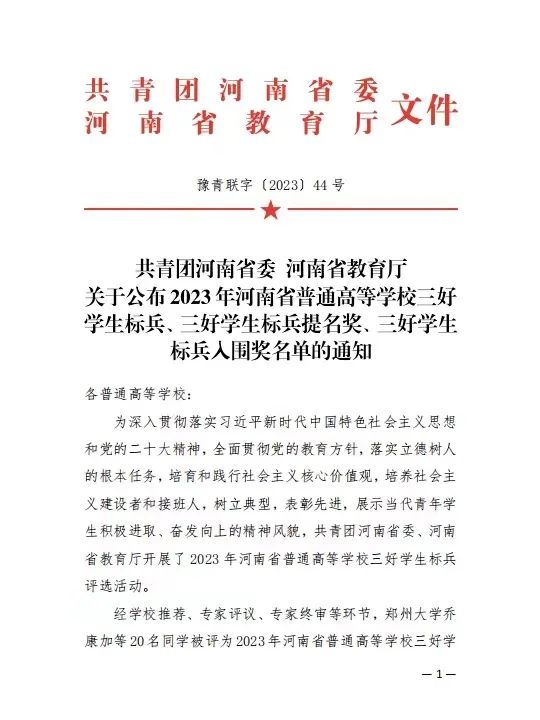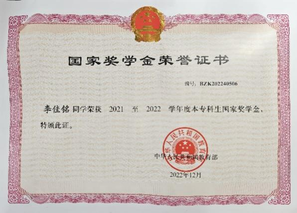纸上得来终觉浅,绝知此事要躬行。李佳铭深知,仅仅学习书本上的理论知识是远远不够的,必须付诸实践。于是,他积极参与科研训练、学科竞赛,将自己学习到的理论知识充分运用到实践当中,通过实践去深化自己所学到的理论知识。在这个过程中,他不断提升自己的综合能力,获得2021-2022学年度本专科生国家奖学金、2023年河南省三好学生等荣誉称号。