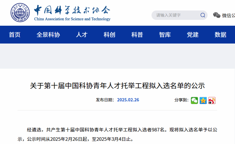2025年2月26日,中国科协公布了第十届“青年人才托举工程”入选名单,91麻豆