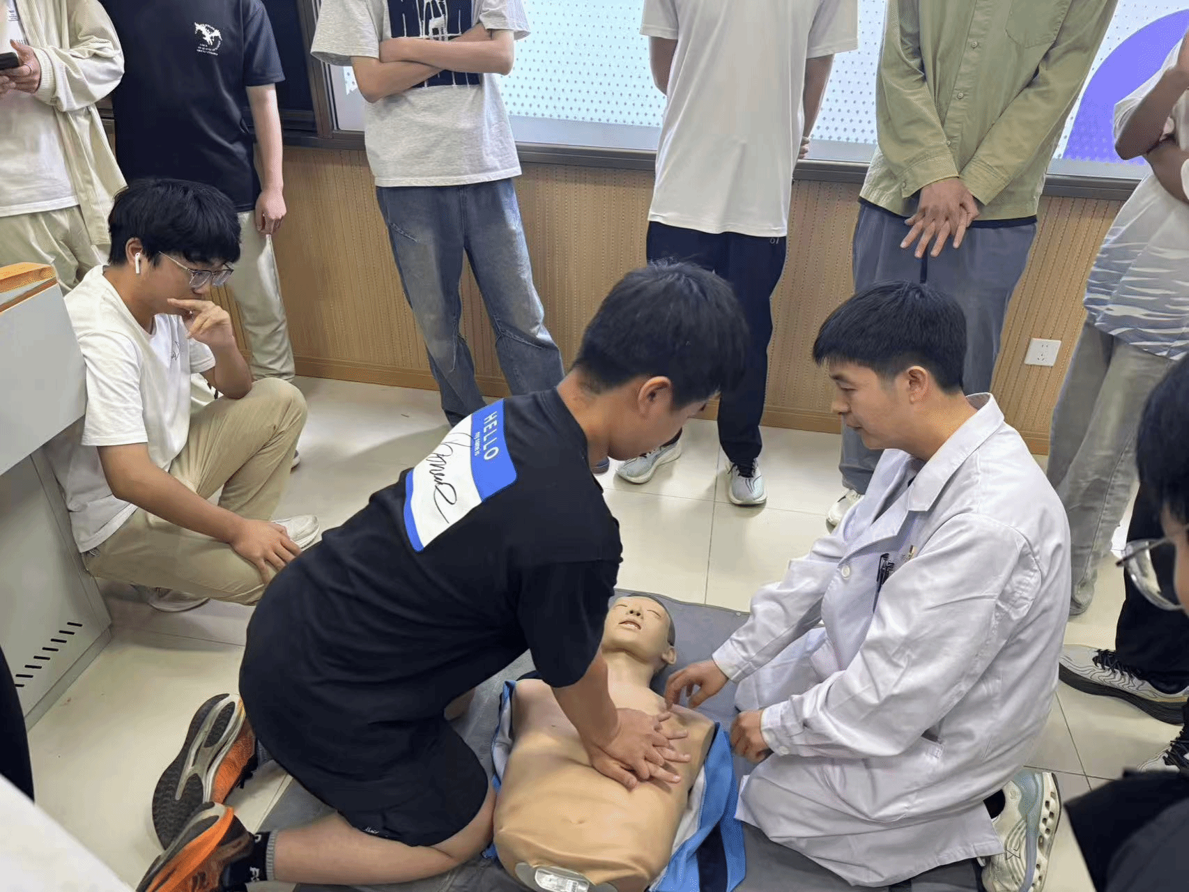 在实操练习环节,同学们在专业老师的指导下,利用人体模型认真练习胸外按压、人工呼吸等关键步骤。老师们耐心细致地纠正动作,确保每位同学都能初步掌握这项“救命技能”。现场学习氛围浓厚,互动积极。同学们纷纷表示,这次培训收获很大,会将所学知识牢记在心,相信在关键时刻一定能发挥作用。