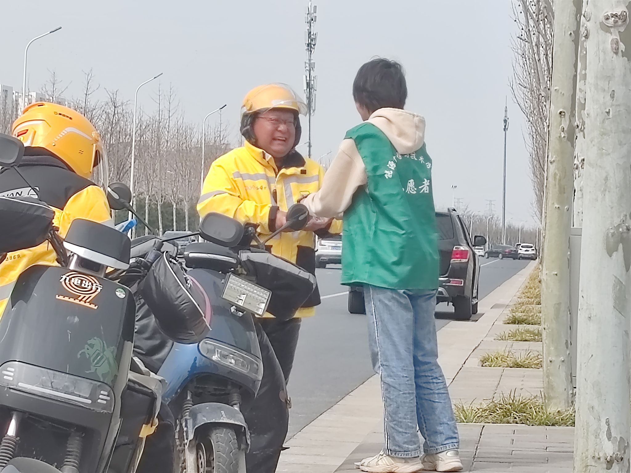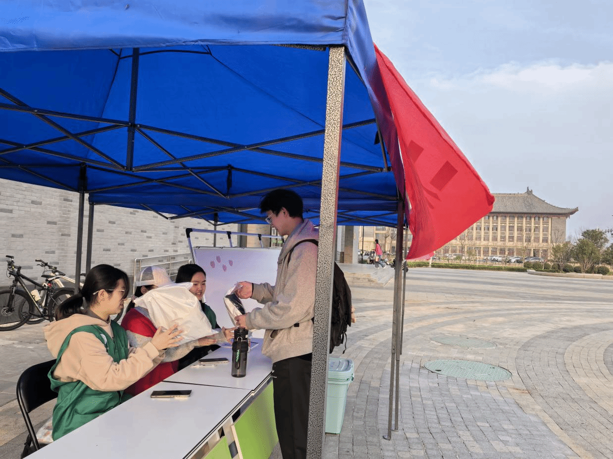 活动期间,学院在南门和西门设立爱心服务点,为环卫工人、快递小哥等城市基层工作者送上饮用水,共服务500余人次。各团支部轮班值守,用真诚的关怀致敬这些“城市守护者”的辛勤付出。参与活动的学生表示:“通过亲手传递温暖,我们更加理解了平凡岗位的伟大,也感受到助人带来的快乐。”这一行动不仅传递了社会正能量,更唤起了公众对基层劳动者的关注与尊重。